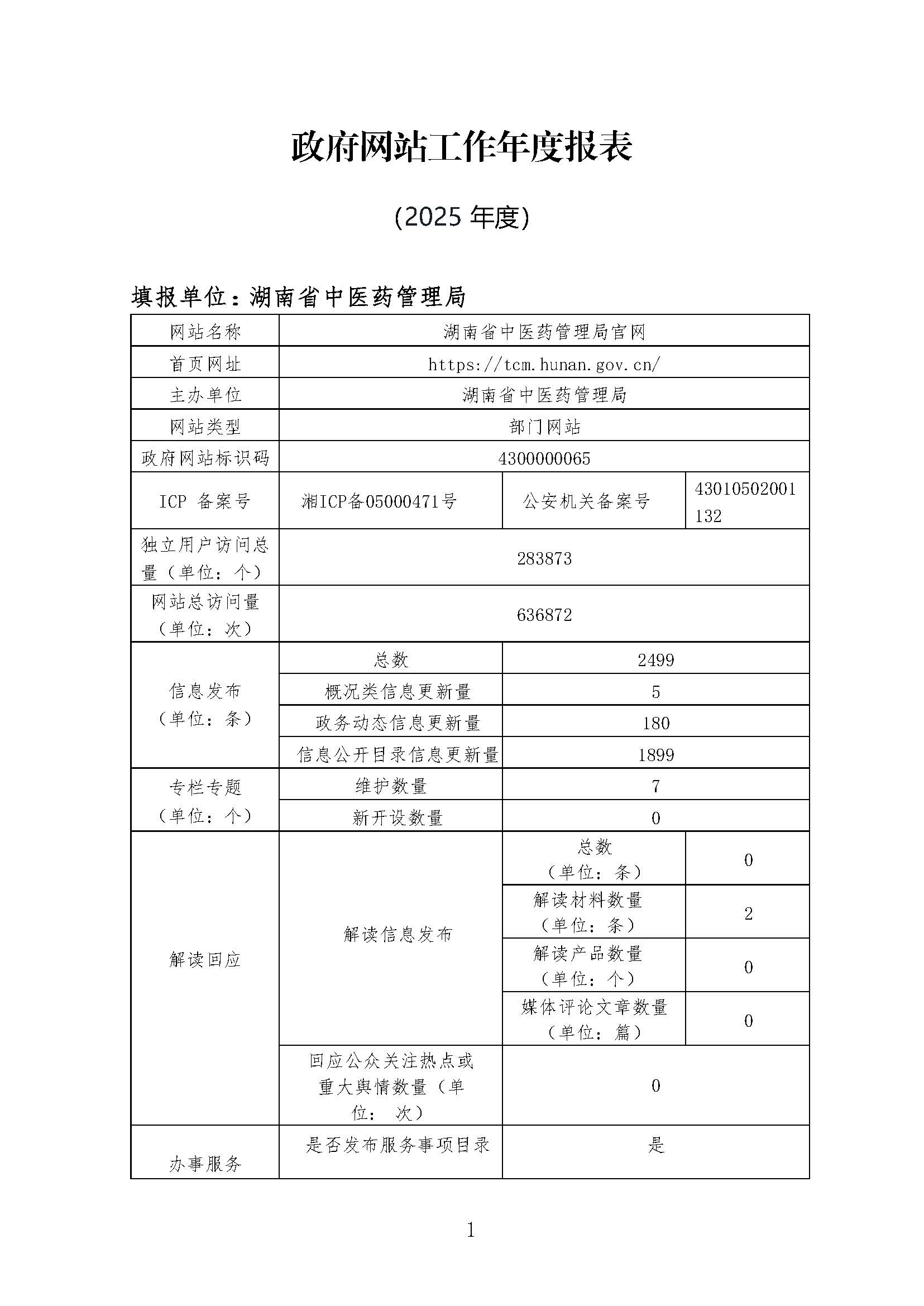 名称:湖南省中医药管理局网站2025年度工作报表